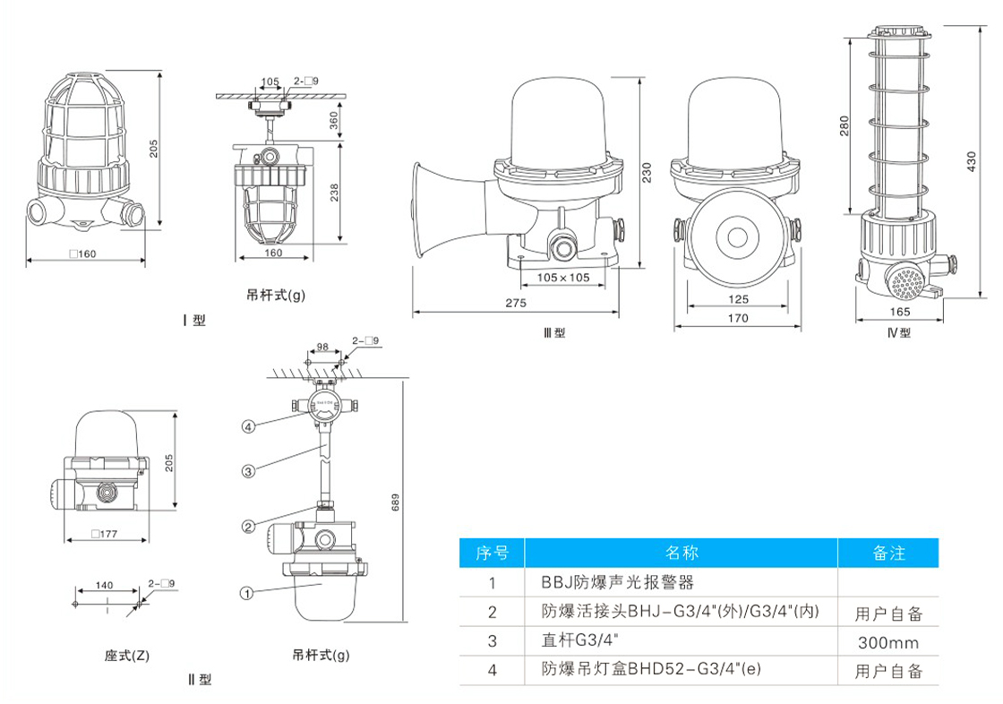 ◆装配光源:5W旋转式警示灯(普通型)、LED