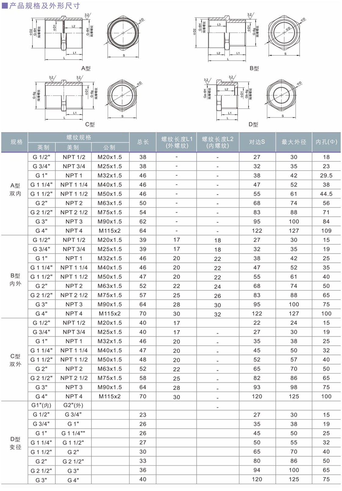 2.螺纹规格可根据用户要求特制或两端规格不同。