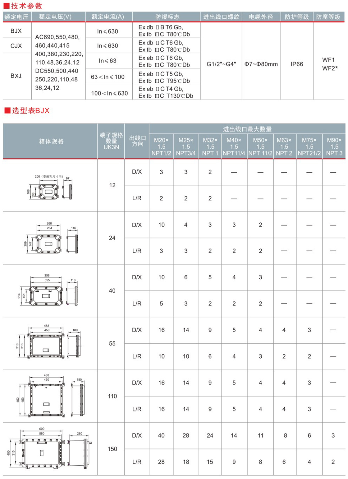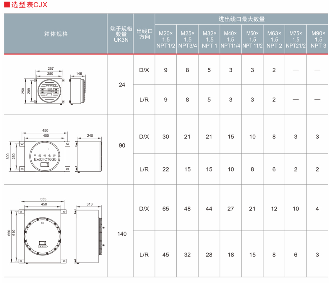 •进出线口有多种方式及规格;